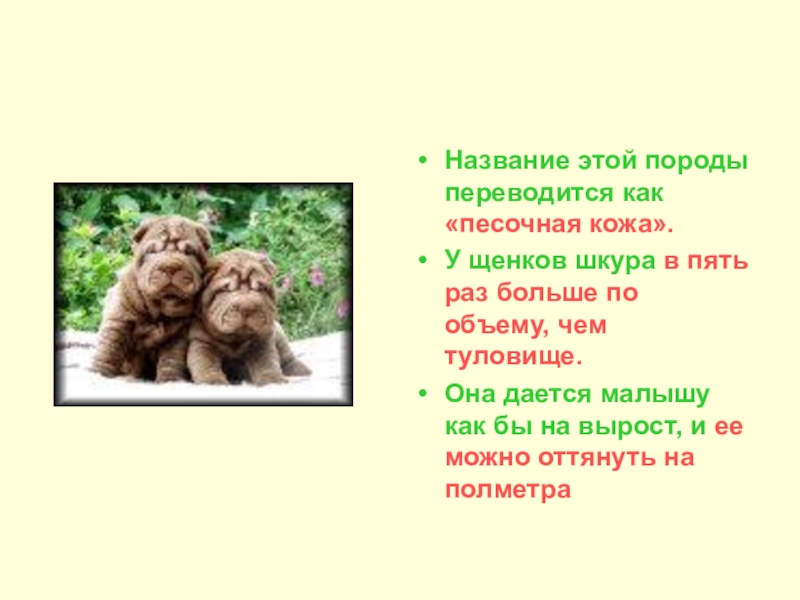 Название этой породы переводится как «песочная кожа». У щенков шкура в пять раз больше по объему, чем
