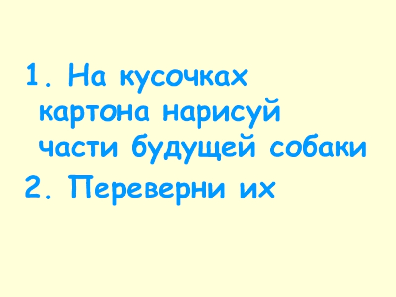 Слайд 91. На кусочках картона нарисуй части будущей собаки