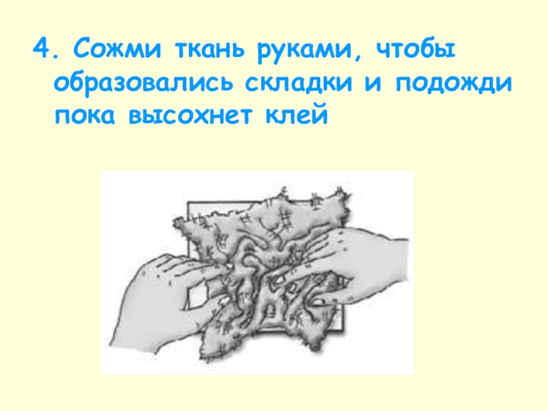 Слайд 114. Сожми ткань руками, чтобы образовались складки и подожди пока высохнет