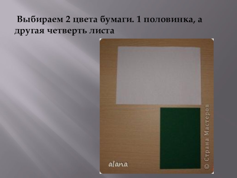 Выбираем 2 цвета бумаги. 1 половинка, а другая четверть листа