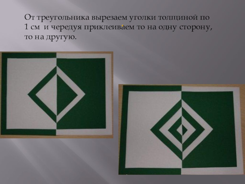 От треугольника вырезаем уголки толщиной по 1 см и чередуя приклеиваем