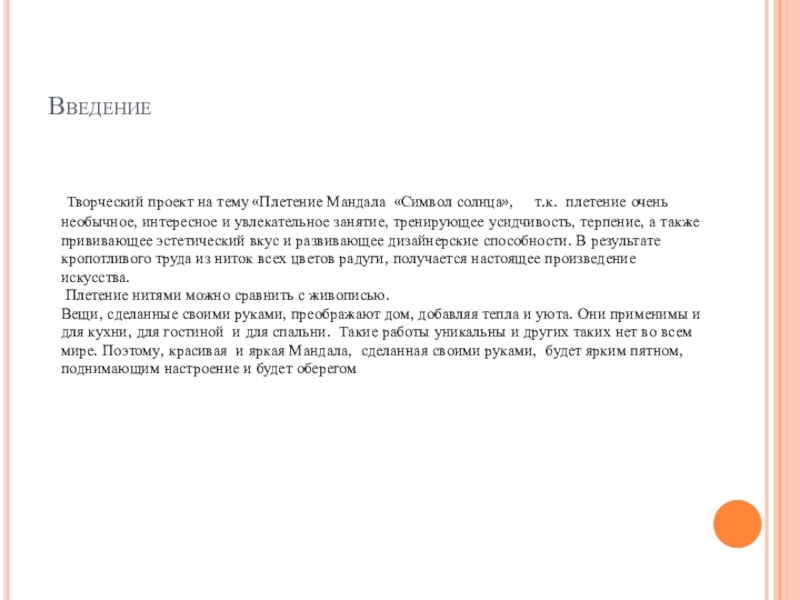 Творческий проект на тему «Плетение Мандала «Символ солнца»,
