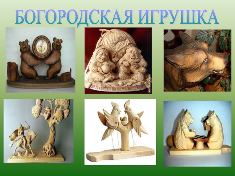 одного из крупнейших центров художественных ремесел Московской Руси ещё 350 лет назад. Традиционная богородская игрушка - это неокрашенные фигурки людей, животных и птиц из липы, композиции из жизни русского крестьянина. Символом промысла до сих пор считаются «мужик и медведь» в различных сюжетных постановках, первой из которых стала подвижная игрушка «Кузнецы».