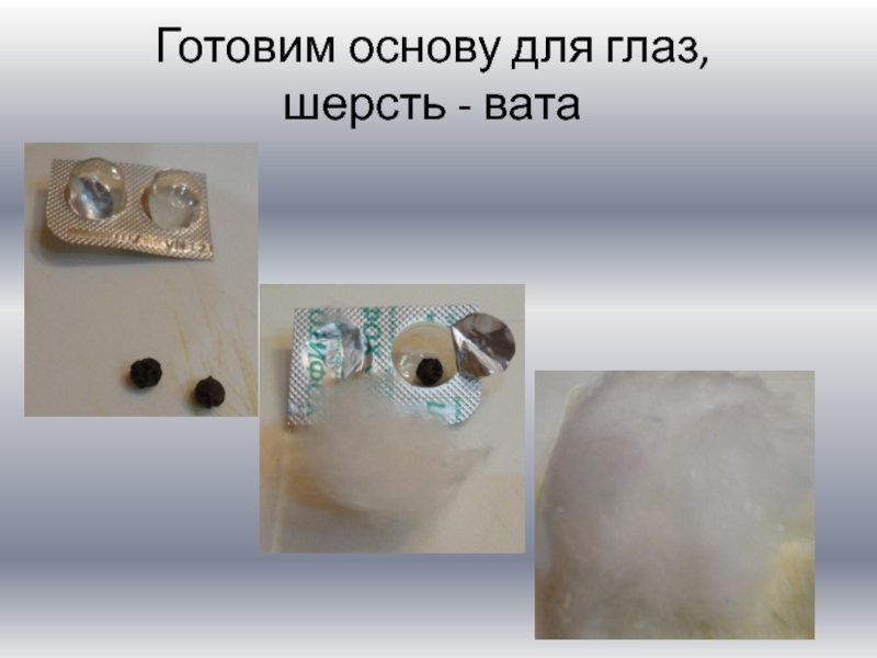 Слайд 7Готовим основу для глаз, шерсть - вата