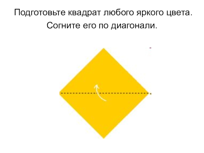 Слайд 2Подготовьте квадрат любого яркого цвета. Согните его по диагонали.