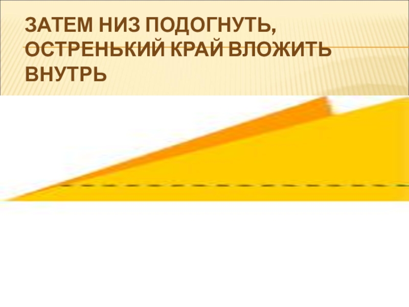 Слайд 6ЗАТЕМ НИЗ ПОДОГНУТЬ, ОСТРЕНЬКИЙ КРАЙ ВЛОЖИТЬ ВНУТРЬ