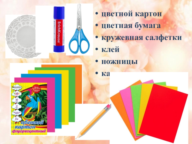 цветной картонцветная бумагакружевная салфеткиклейножницыкарандаш