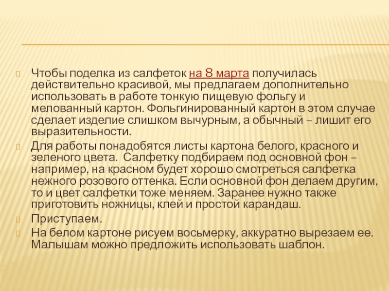 на видимую простоту изготовления, эта поделка порадует и даже удивит любую женщину, поскольку выглядит она очень изящно и празднично.