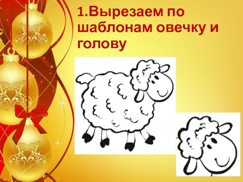 Слайд 161.Вырезаем по шаблонам овечку и голову