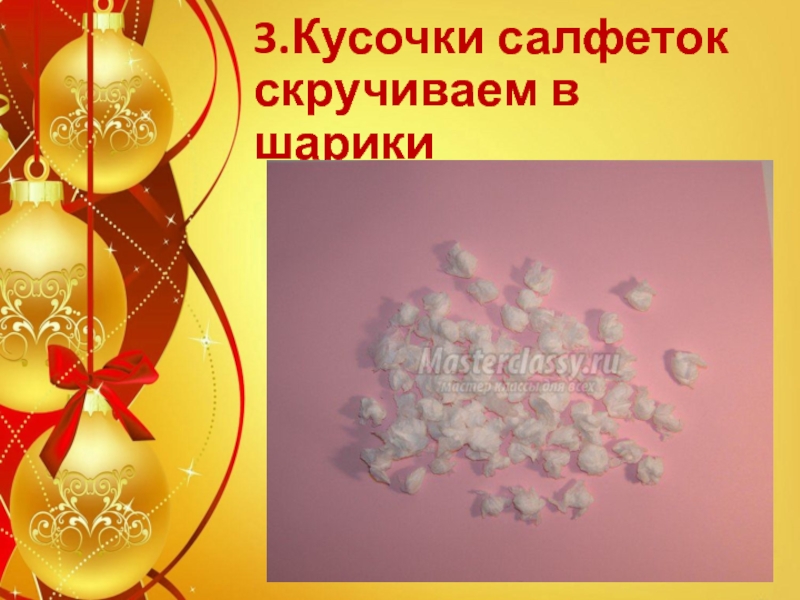 Слайд 183.Кусочки салфеток скручиваем в шарики