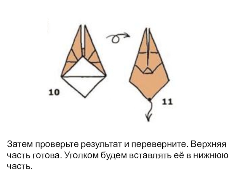 Слайд 11Затем проверьте результат и переверните. Верхняя часть готова. Уголком будем вставлять