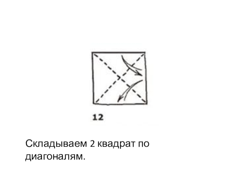 Слайд 12Складываем 2 квадрат по диагоналям.