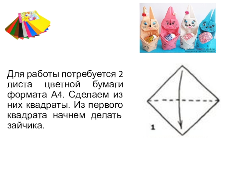 них квадраты. Из первого квадрата начнем делать зайчика.