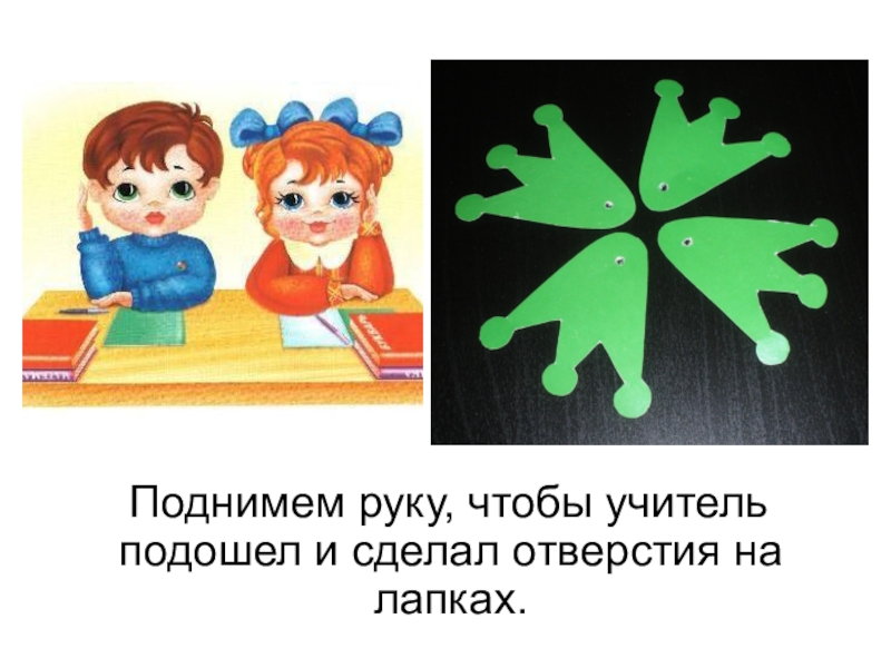Слайд 5 Поднимем руку, чтобы учитель подошел и сделал отверстия на