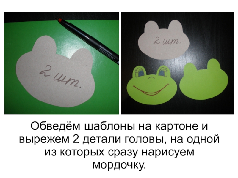 Слайд 3 Обведём шаблоны на картоне и вырежем 2 детали головы,