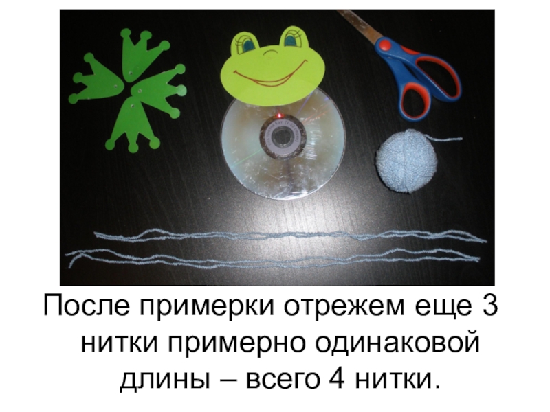 Слайд 9После примерки отрежем еще 3 нитки примерно одинаковой длины – всего