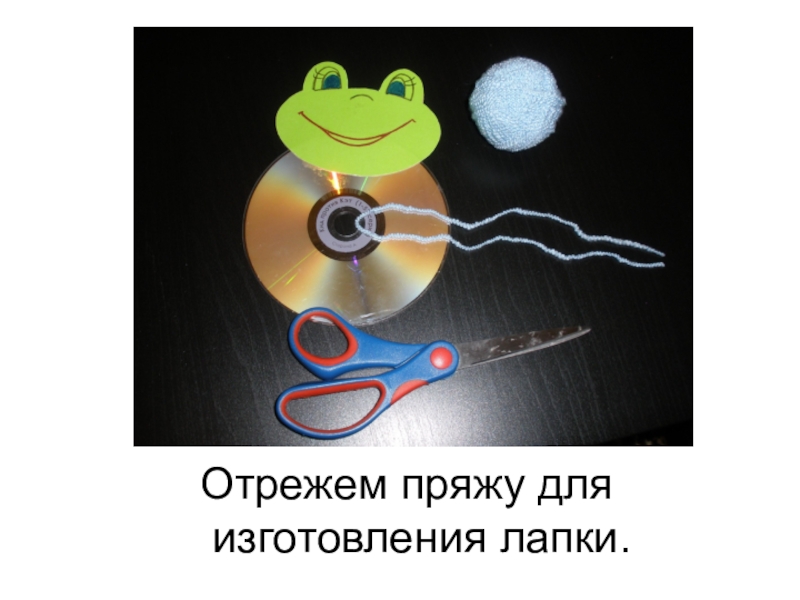 Слайд 8Отрежем пряжу для изготовления лапки.
