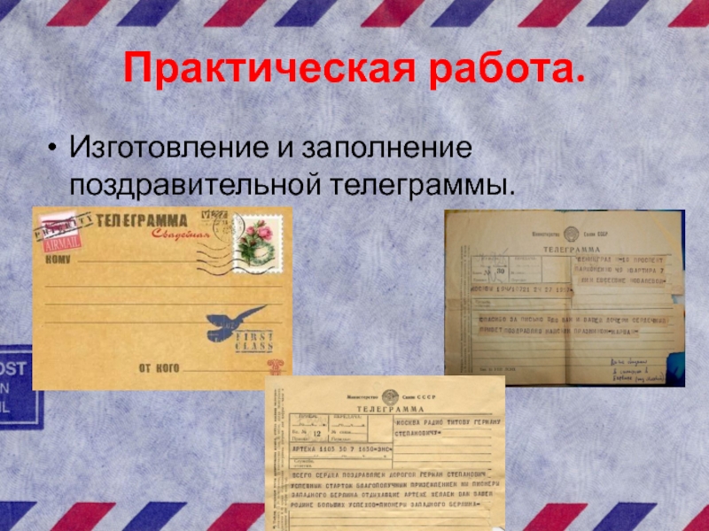 Практическая работа.Изготовление и заполнение поздравительной телеграммы.