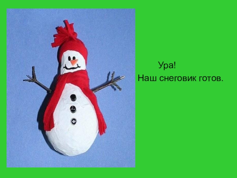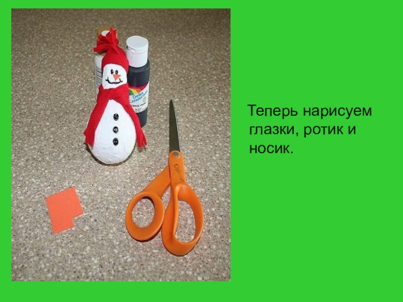 шарфик снеговичку, делаем бахрому и обвязываем шарф вокруг шеи.
