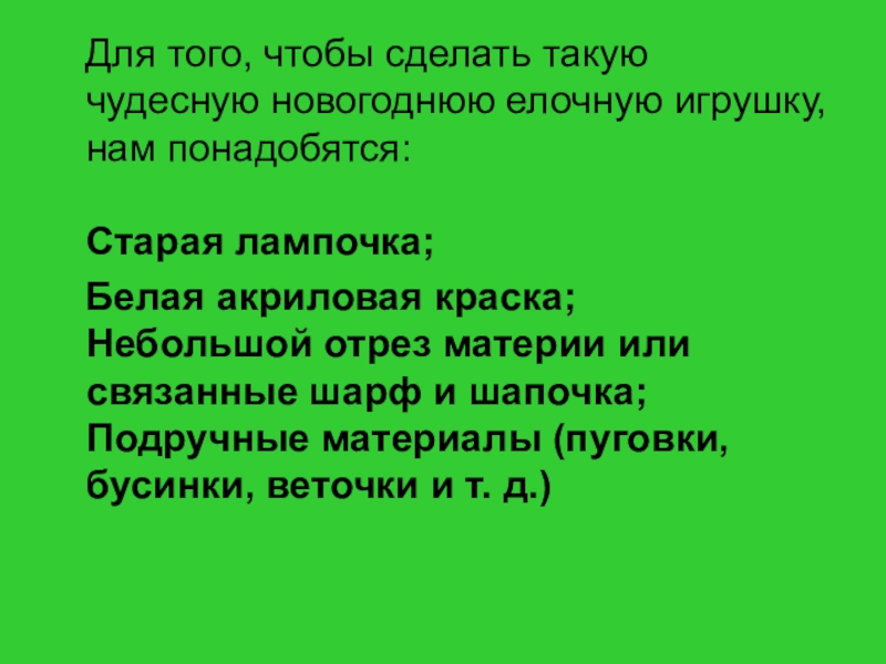 Для того, чтобы сделать такую чудесную новогоднюю елочную игрушку, нам понадобятся:  Старая лампочка;