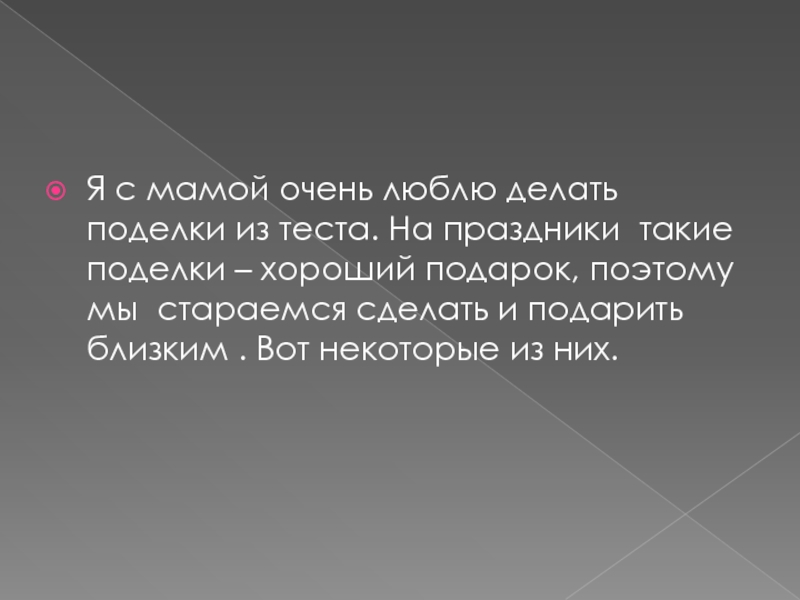 Слайд 13Я с мамой очень люблю делать поделки из теста. На