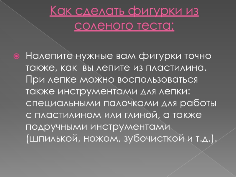 Слайд 10Как сделать фигурки из соленого теста: