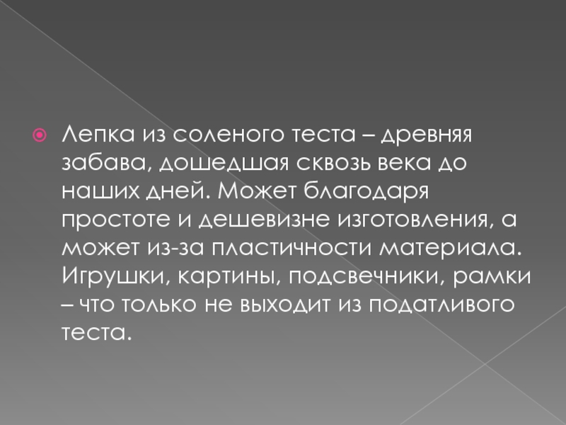 Слайд 2Лепка из соленого теста – древняя забава, дошедшая сквозь века до