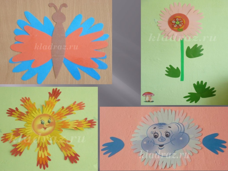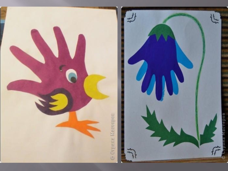 Презентация, доклад по технологии Простые поделки на основе ладошки