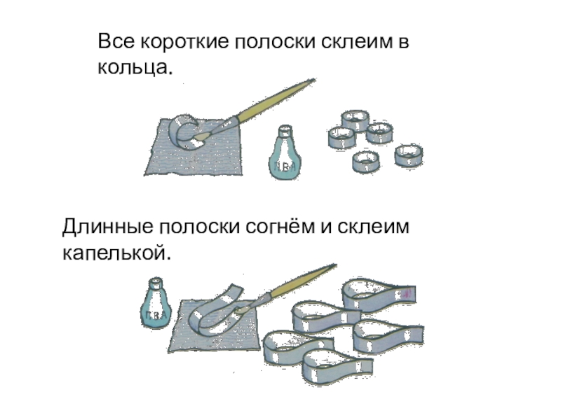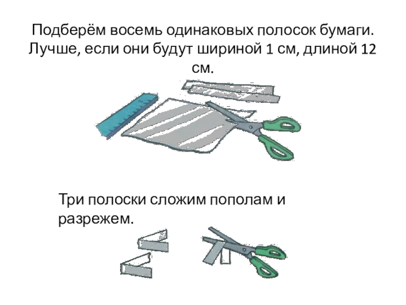 Три полоски сложим пополам и разрежем.