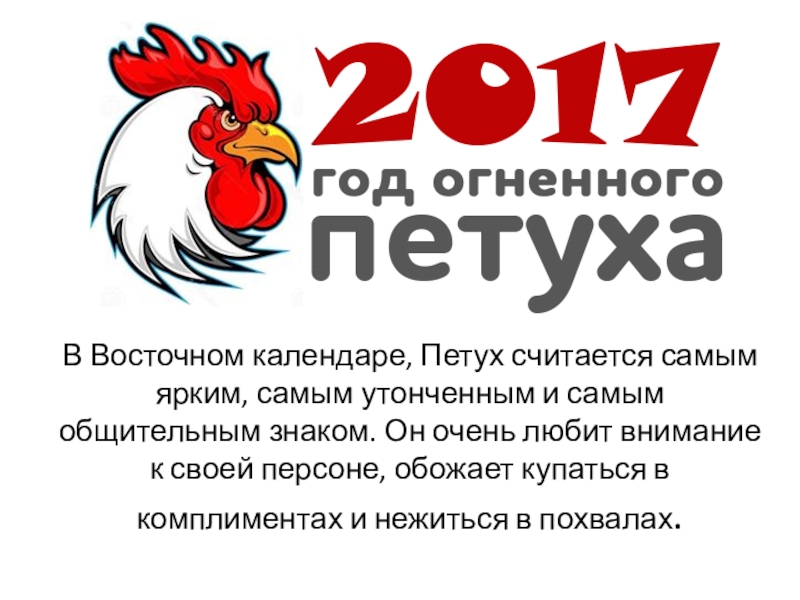 Слайд 2В Восточном календаре, Петух считается самым ярким, самым утонченным и самым