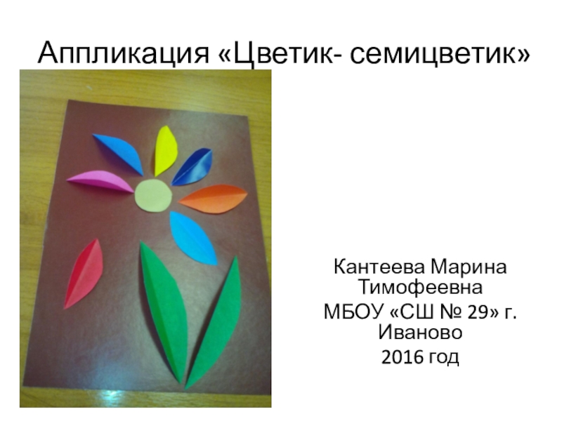 Аппликация «Цветик- семицветик»Кантеева Марина ТимофеевнаМБОУ «СШ № 29» г. Иваново2016 год