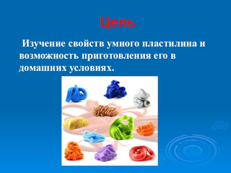 Цель Изучение свойств умного пластилина и возможность приготовления его в домашних условиях.