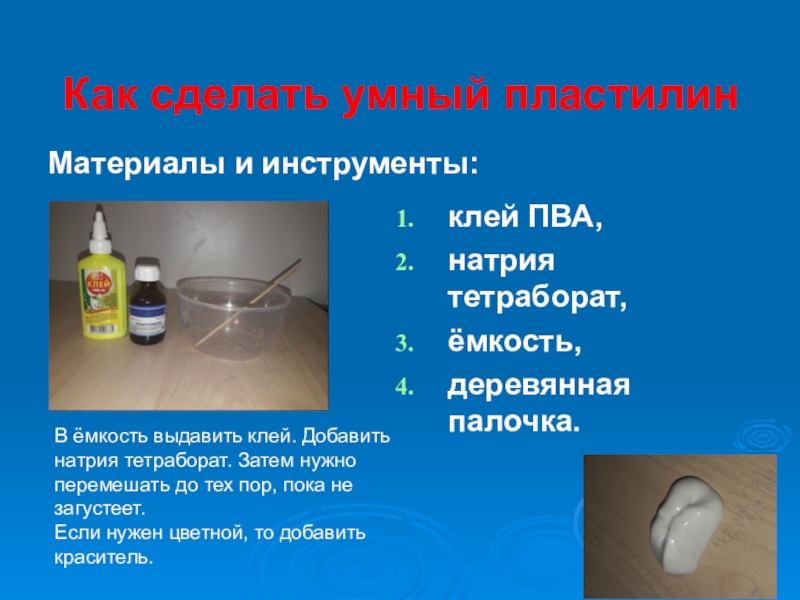 экспериментов получить рецепт умного пластилина в домашних условиях.