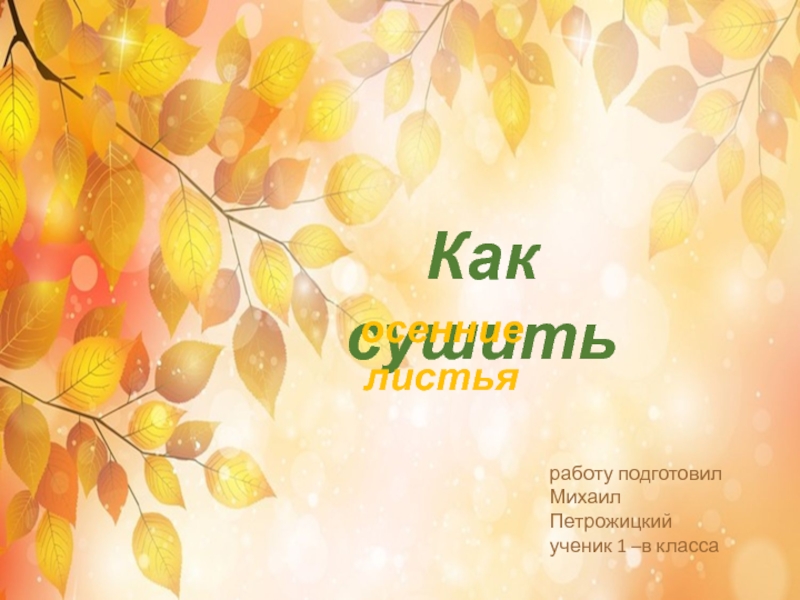 Как сушить осенние листья работу подготовил Михаил Петрожицкийученик 1 –в класса