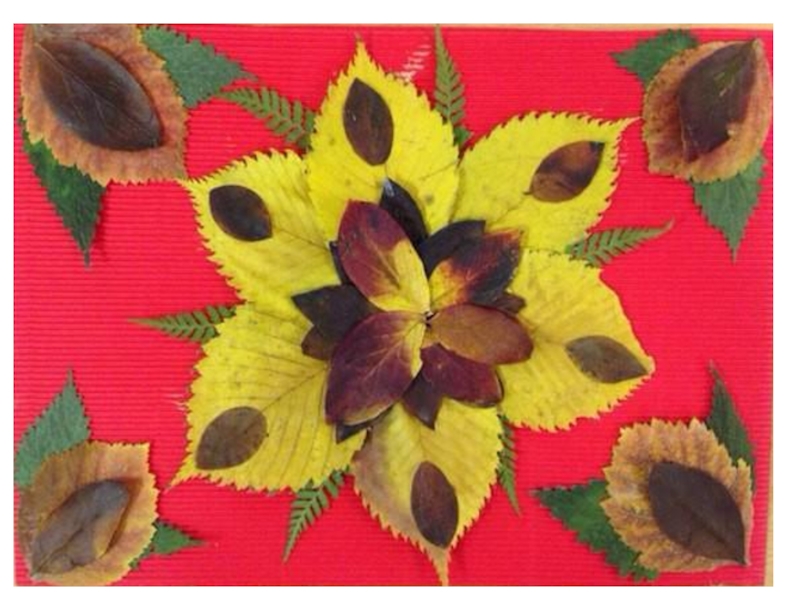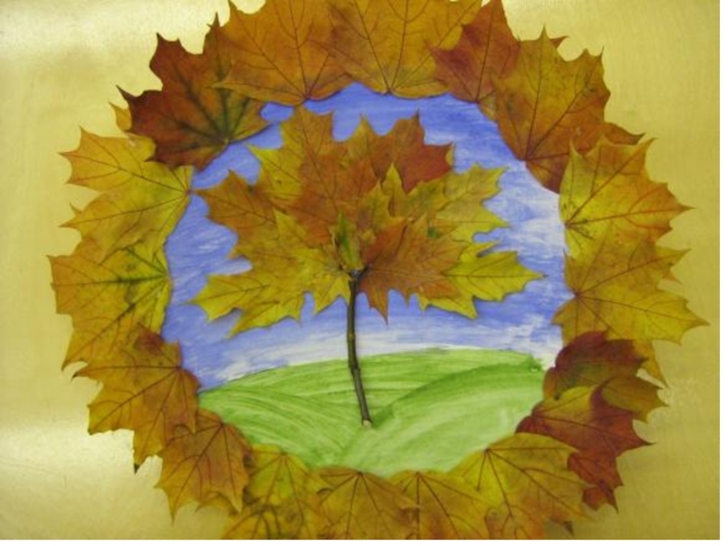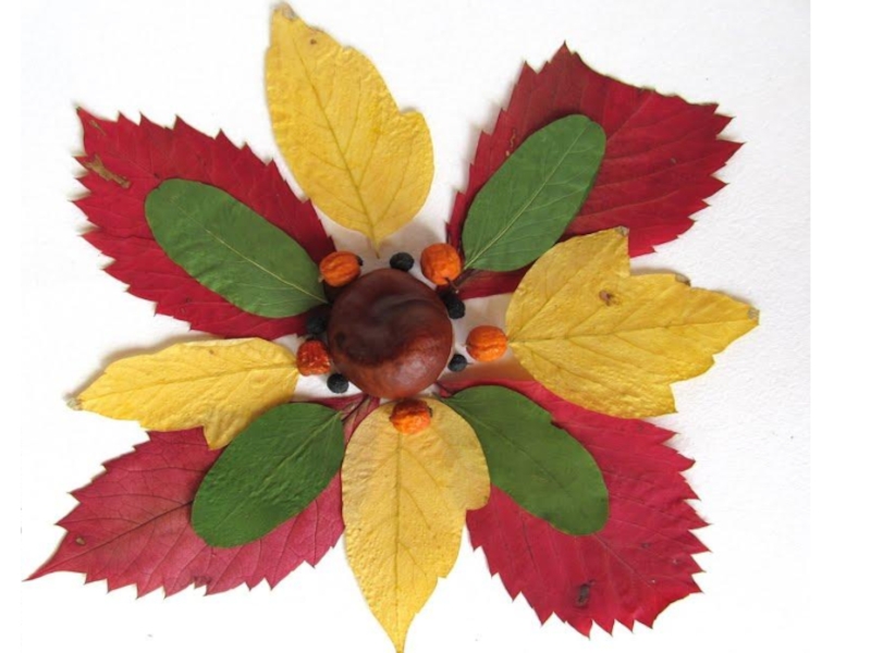 Это самый распространенный вид осеннего творчества. Составляем из сухих листьев разных