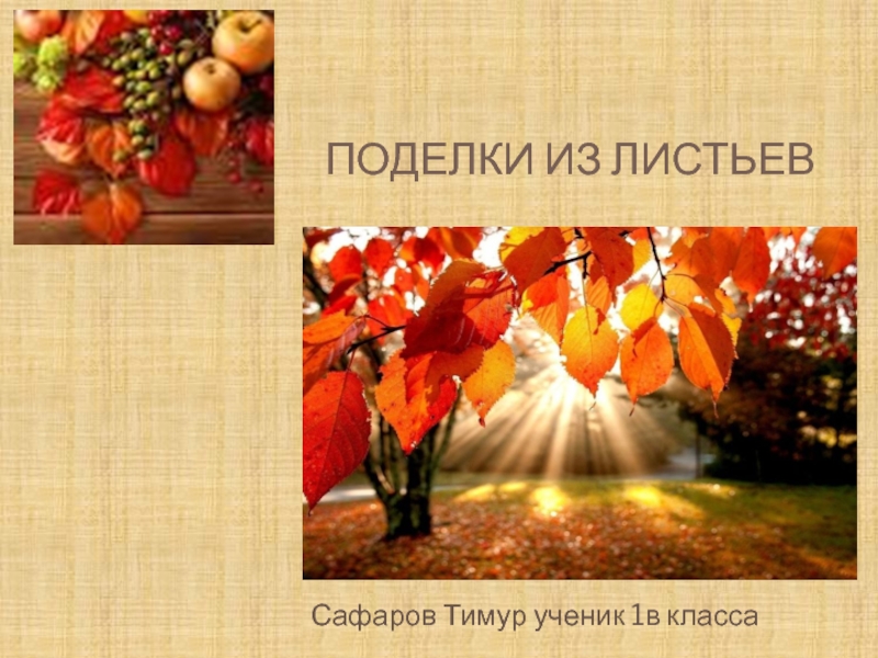 Поделки из листьевСафаров Тимур ученик 1в класса