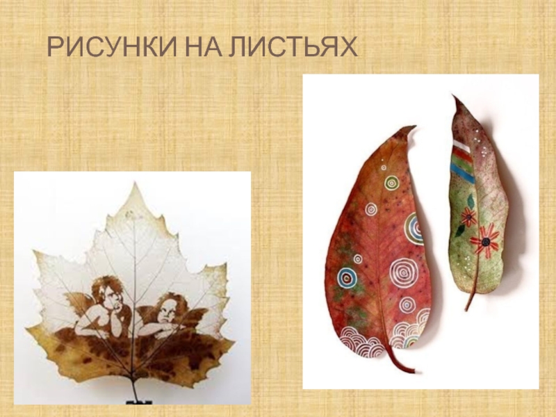 Слайд 18РиСУНКИ НА ЛИСТЬЯХ