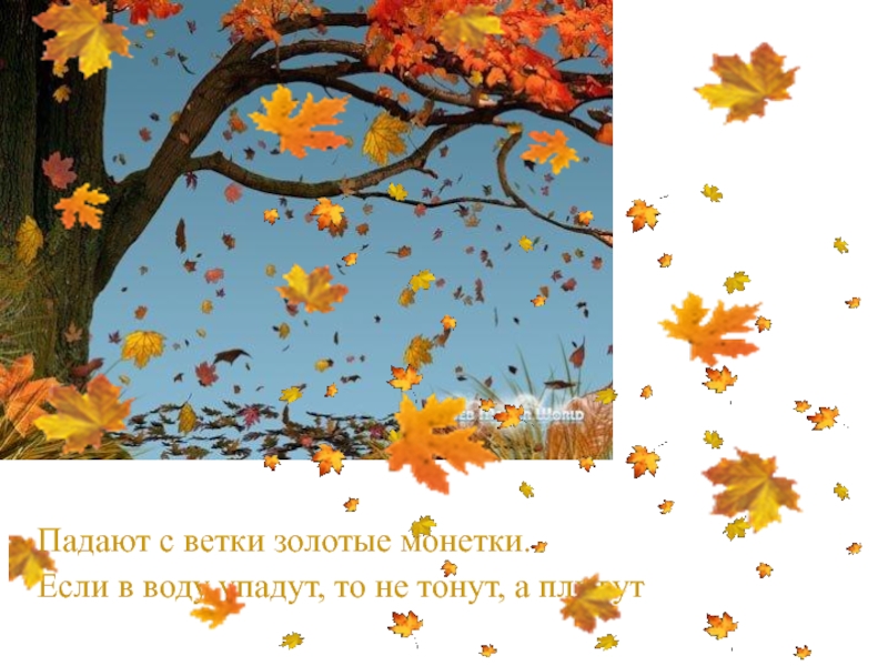 Падают с ветки золотые монетки.Если в воду упадут, то не тонут, а плывут