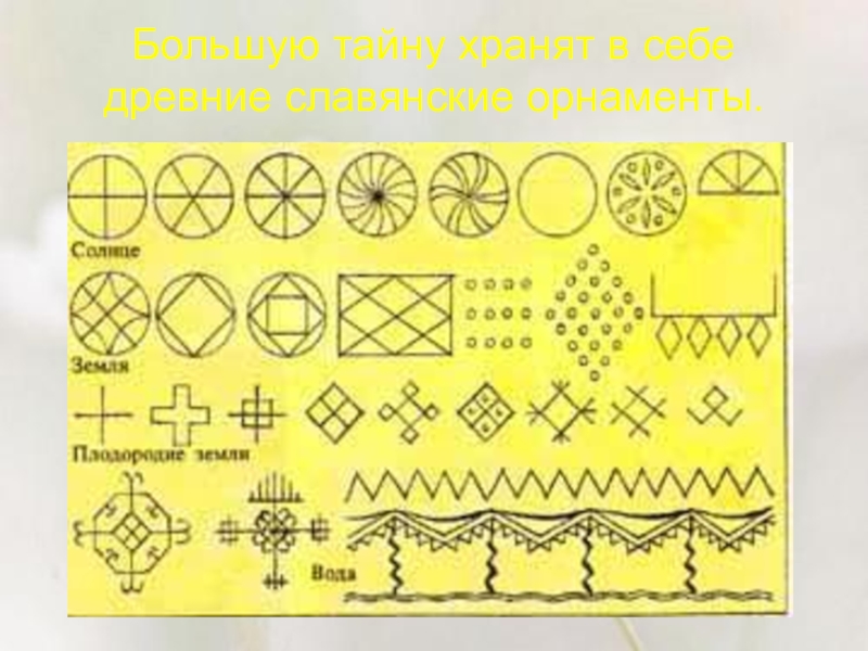 Слайд 7Большую тайну хранят в себе древние славянские орнаменты.