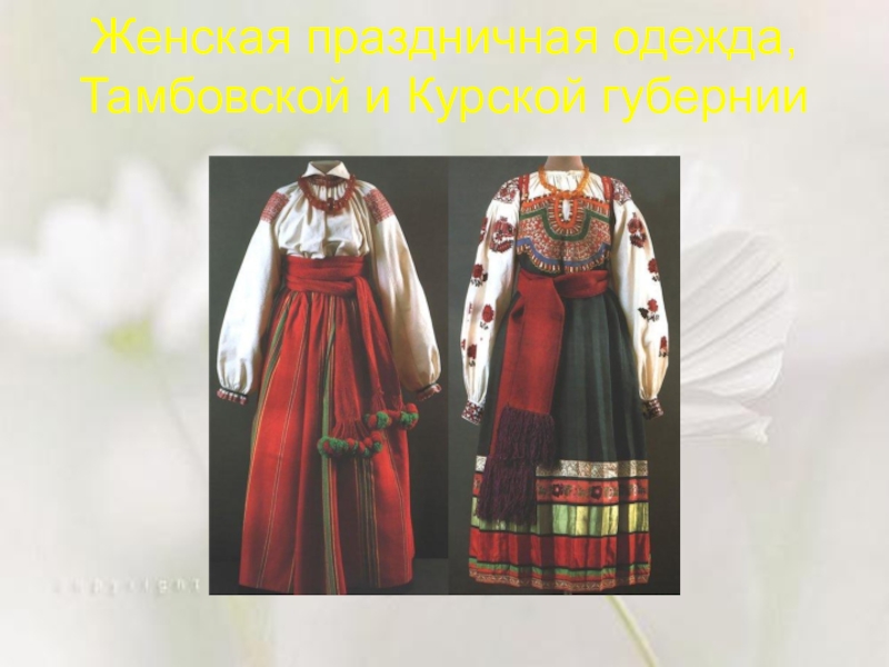 Слайд 13Женская праздничная одежда, Тамбовской и Курской губернии