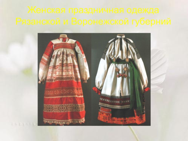 Слайд 12Женская праздничная одежда Рязанской и Воронежской губерний