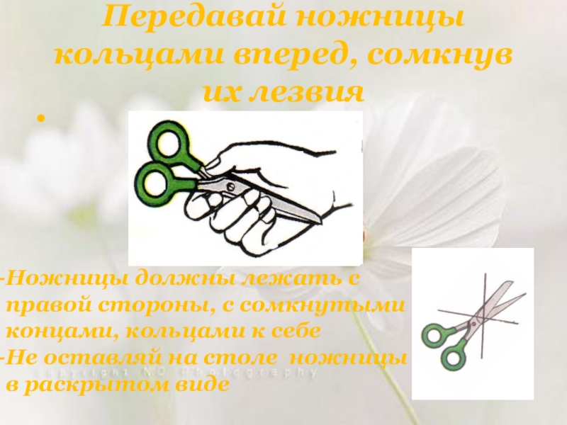 Слайд 16Передавай ножницы кольцами вперед, сомкнув их лезвия