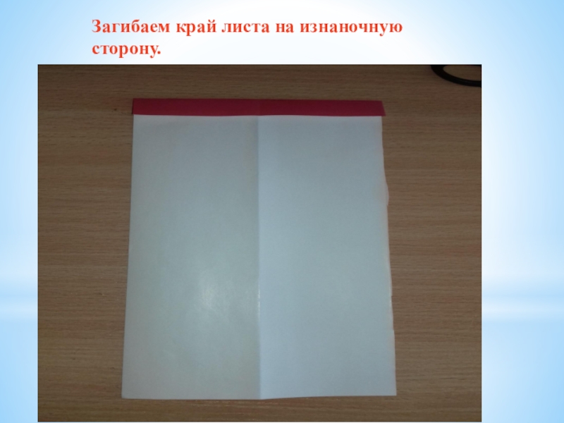 Слайд 4Загибаем край листа на изнаночную сторону.