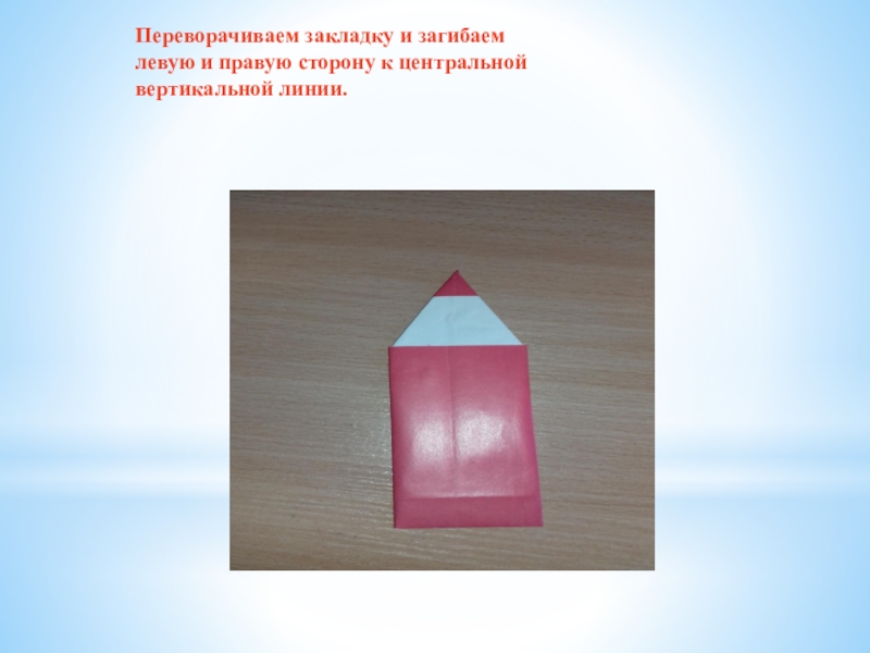 Слайд 8Переворачиваем закладку и загибаем левую и правую сторону к центральной вертикальной