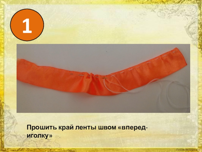 1Прошить край ленты швом «вперед-иголку»