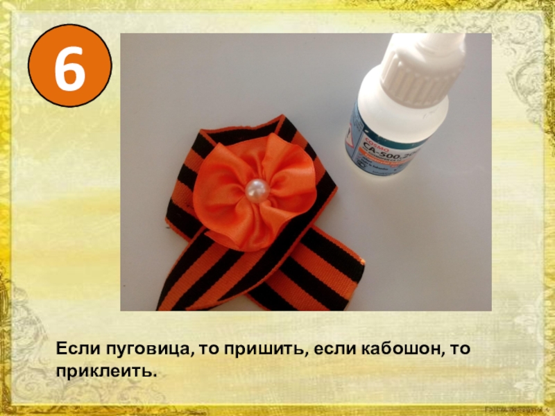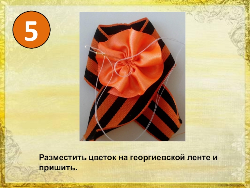 5Разместить цветок на георгиевской ленте и пришить.