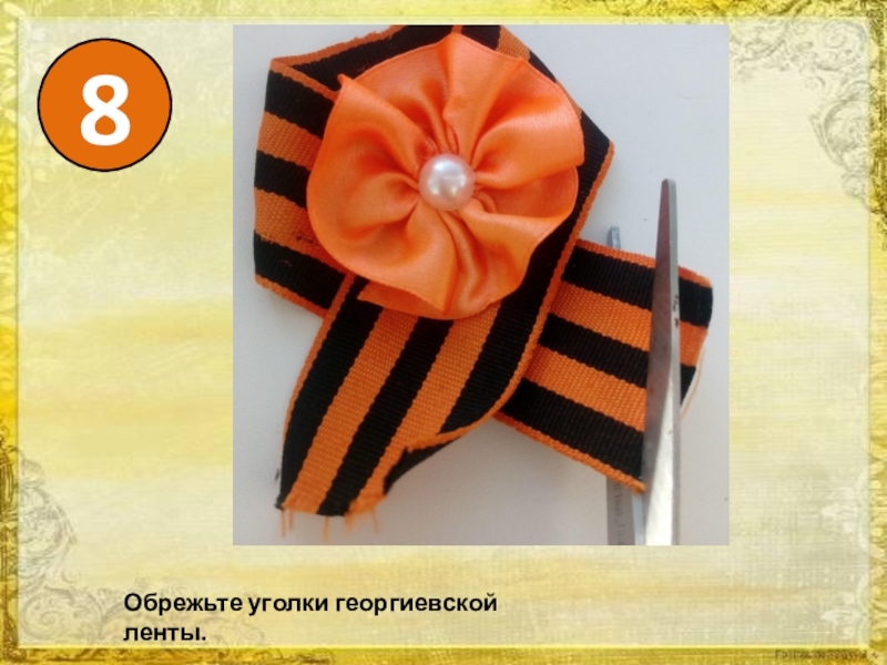 8Обрежьте уголки георгиевской ленты.