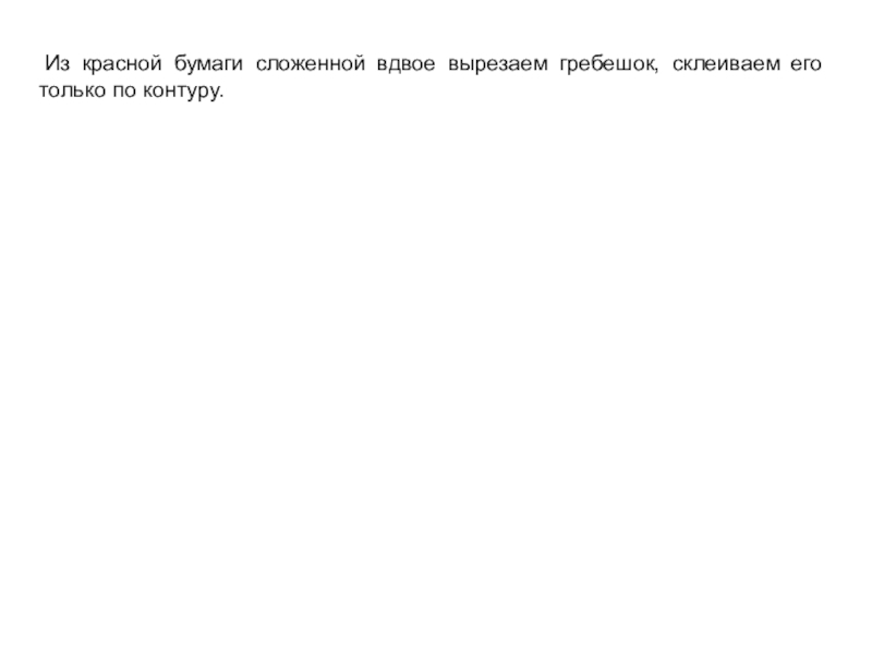 Слайд 7 Из красной бумаги сложенной вдвое вырезаем гребешок, склеиваем его только по