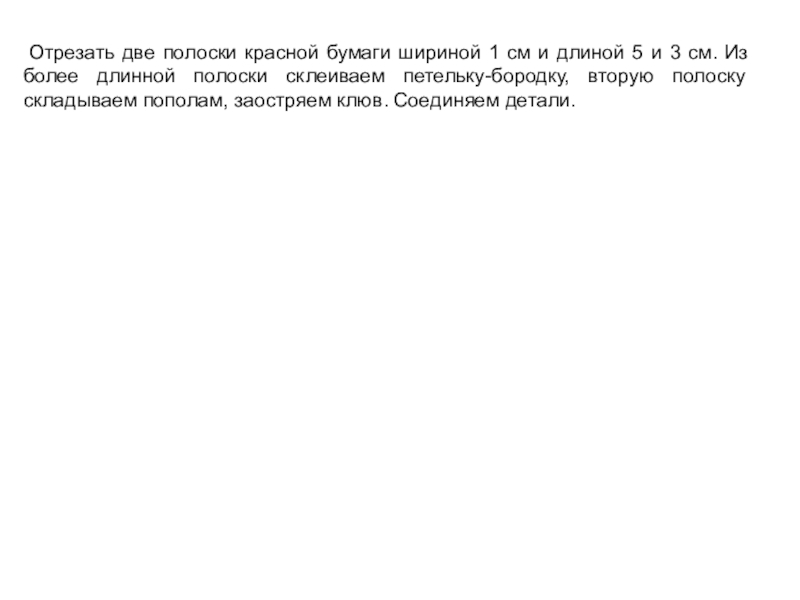 и 3 см. Из более длинной полоски склеиваем петельку-бородку, вторую полоску складываем пополам, заостряем клюв. Соединяем детали.
