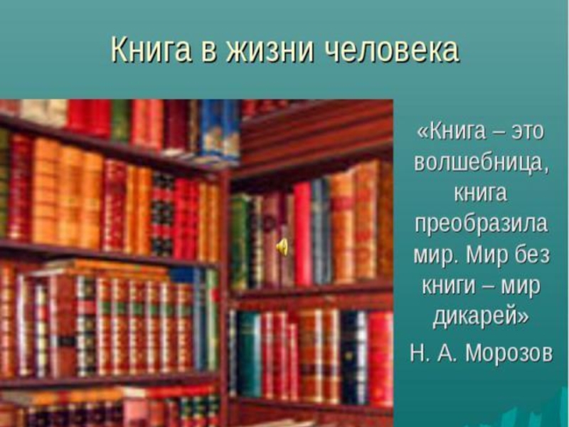 Презентация, доклад по технологий на темуКнига в жизни человека